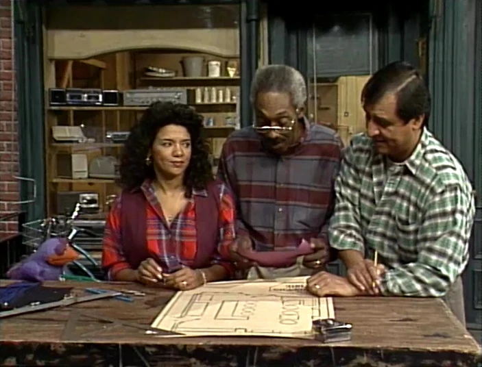 SCENE 3 | Mr. Handford reviews the design plans for the store and loves them, not wanting to change a thing. Then, young Melissa rolls in and suggests a ramp for her wheelchair. A small bird (Richard Hunt) appears as well with plans for a fly-thru birdfeeder. |