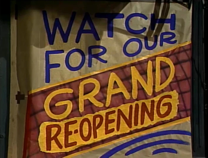 SCENE 6 | Telly is thrilled at the idea of entering the new Hooper's Store, sitting on the new stools at the new counter, and ordering some new milkshakes. Mr. Handford tells him that he can't open the store right away - he needs to organize some things and will have a grand opening tomorrow. Telly freaks out and tries to forget about the more waiting he has to do, as Luis announces the sponsors. |