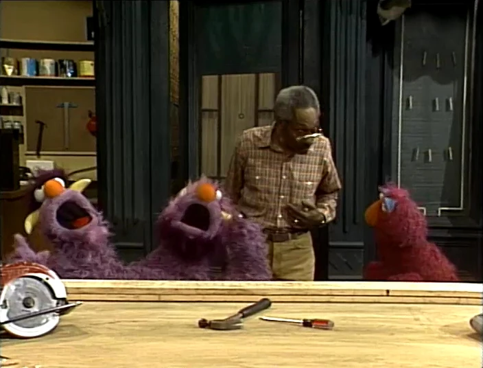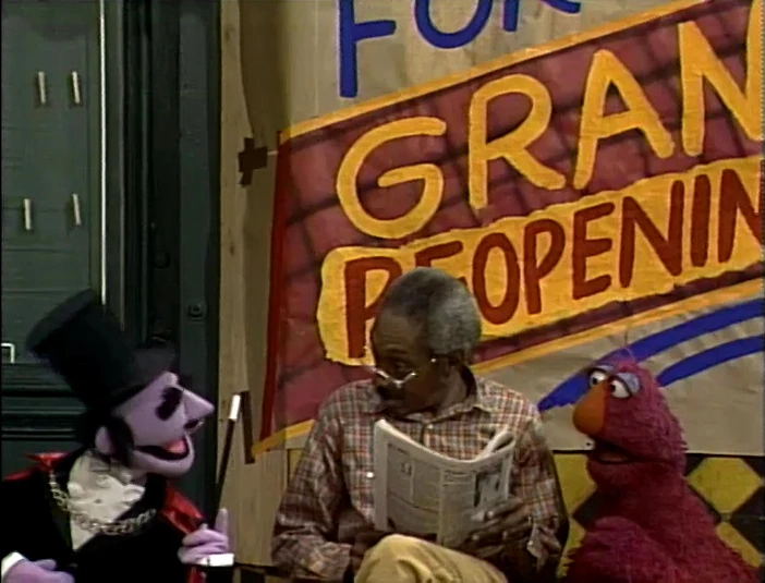 SCENE 4 | The Count tries to help Telly get his mind off the store through counting. They count all the hammering sounds they hear, as well as dancing to a few of the rhythms it makes, but Telly still can't help but think of the store when the hammering temporarily stops. He decides to go for a walk as the Count stays behind to continue counting. |