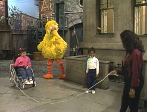 SCENE 2 | Big Bird confesses to Maria that he wants Sheryl to join him, Travis, and Vanessa in their jump rope game, but doesn't think she can actually play (she can't jump in her wheelchair). Maria says there might be another way she can play and encourages him to ask. Sheryl is delighted to be invited and offers to twirl the rope. |