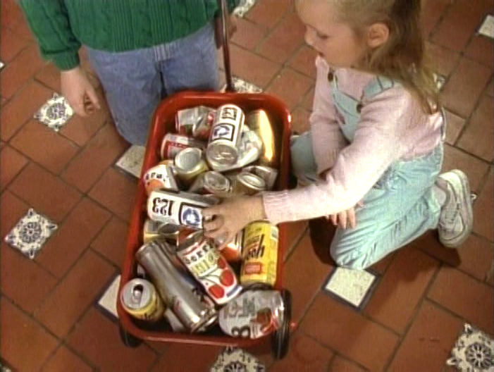 Film | A little girl narrates a film about how cans can be recycled. She washes them and collects them in a wagon, which she takes to the recycling center. There it is sorted and separated with a magnet. After its loaded onto trucks, it is taken to a factory to be melted and shaped into new cans like the ones seen in her fridge at home. (First: Episode 2740) |