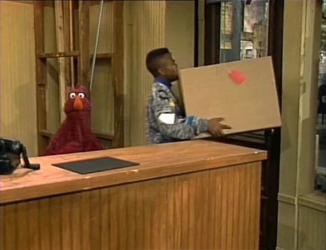 SCENE 2 | Telly informs the viewer about the word "important" by showing how his current task, holding the door open, is important so the others can take boxes of junk out. He inadvertently traps Tyrone and his box inside, causing him to spill it everywhere. Telly returns to keeping the door open, wondering if he gets to keep his job. |