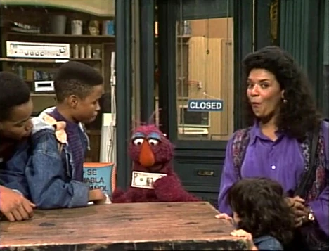 SCENE 5 | Maria and Gabi return to the store and Maria is pleased with their work. The teens muse about what they'll be when they grow up; Jelani claims he can hire them all when he becomes the governor (then President). They reward Telly for his help with a cut of their pay (a dollar), then head off. Telly hopes that when he becomes a teenage monster, he can start his own company too and help people. Mr. Handford announces the sponsors. |