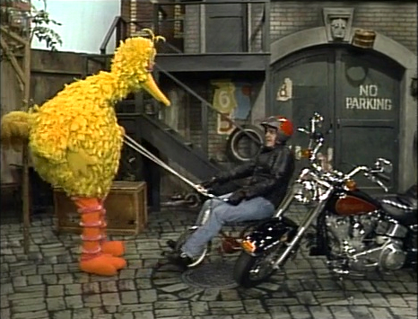 Insert | Jay Leno describes what he has to do before going for a ride on his motorcycle. Big Bird shows up to pull him around on a tricycle instead. (First: Episode 2408) |