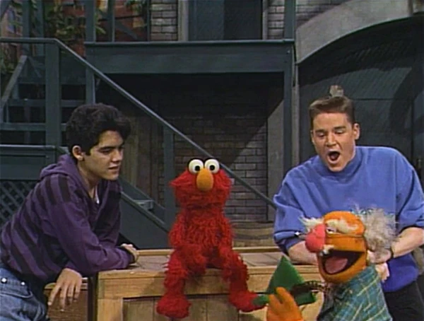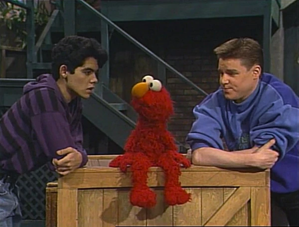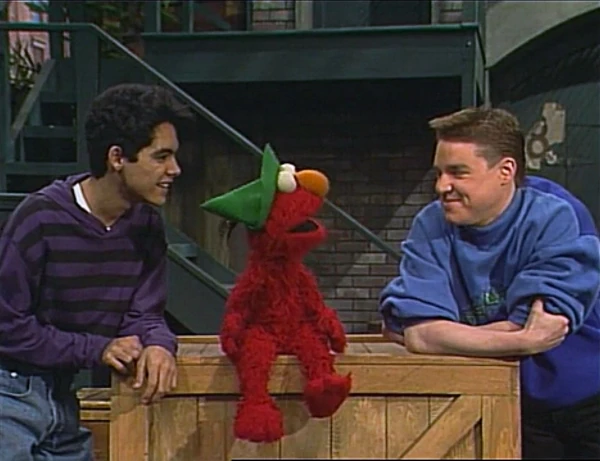 SCENE 6 | Back on Sesame Street, Alex suggests that Elmo try imagining without his hat. Elmo decides to imagine himself finding his hat and feels better after doing so. |