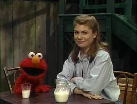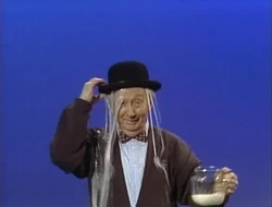 SCENE 2 cont'd | Finally, Uncle Wally pours a pitcher of milk into his hat, which goes onto his head without any spillage. Elmo wonders how he did that, while Gina feigns ignorance. Uncle Wally is seen doing it again, now getting covered in milk when he puts on his hat. Elmo laughs so much, he and his chair fall over. |