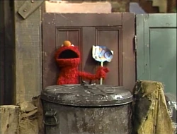 SCENE 1 cont'd | Elmo climbs up the can and hangs on, then gives a few knocks. He falls off when Oscar opens the lid. Oscar doesn't see anyone, so he goes back inside. Elmo climbs up again and calls for Oscar instead. Though he hangs onto the can, he's still not visible by Oscar, who closes the lid and causes Elmo to fall down again. |
