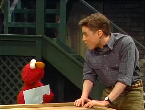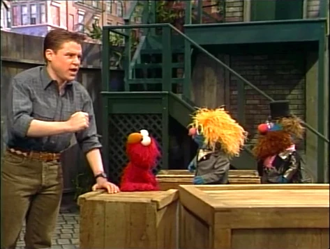 SCENE 1 | Elmo observes Mike talking with rock stars Big Jeffie and Little Chrissy, who will be performing at Mike's high school dance tonight. However, lead singer Little Jerry has caught the chicken pox and can't perform, meaning they'll have to cancel. Mike suggests he could fill in and shows off his talents by singing a little of the Monotones' first hit, "Mad." Chrissy is less than impressed, however. He tries to sing "Sad" instead, but forgets the words. He has Elmo, another Little Jerry fan, sing some of the song. Chrissy and Jeffie are very impressed by Elmo's high vocals, and invite him to replace Little Jerry, thus becoming "Little Elmo and the Monotones!" |