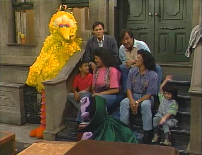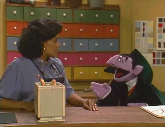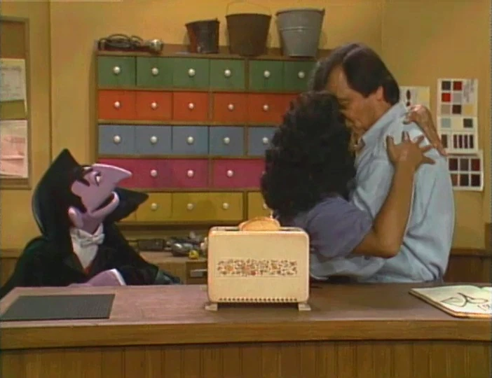 SCENE 5 | Everyone is waiting on the stoop for the taxi to arrive when Maria spots the Count counting the suitcases (or rather the locks, handles, and reinforced leather edges). While he resumes counting quietly, Big Bird is amazed that pretty soon, he's going to see Francis perform his first Crow Indian dance, but learns that it won't happen for a few days as Francis has to practice his dance and get his Crow name with the help of his uncle Philip. The Count breaks his silence to announce he's counted 44 leather corners. ("My name is not the Count von Count for nothing!") |