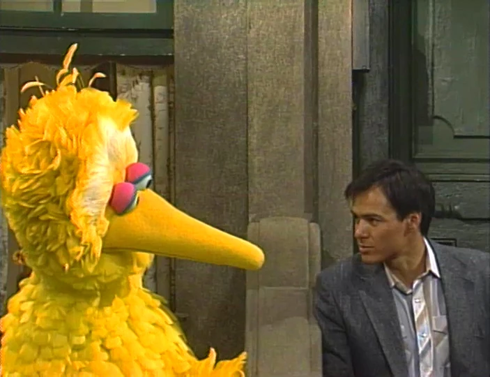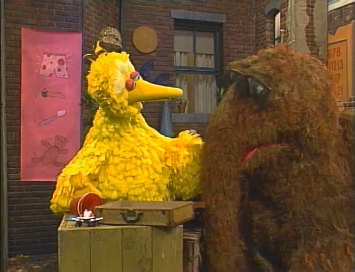 SCENE 4 | Snuffy rushes to Big Bird to tell him about the Crow name and asking why he wasn't told Big Bird had children. Big Bird explains the name is not literal, but represents the importance of birds to them. Snuffy is relieved; if all the Crows were his children, he'd be really busy! |