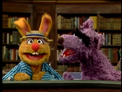SCENE 4 | As the library sits in disarray from the storybook character's antics, Gina, Linda, and Elmo finish writing The Story of Preston Rabbit and throw it into the machine. Preston magically appears and Gina begs for him to help solve their mess. When the Wolf gets hungry for bunny rabbit, Preston runs off to find the crank that will turn off the machine. |