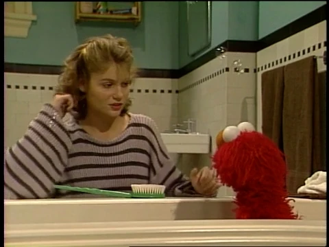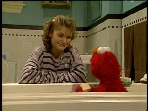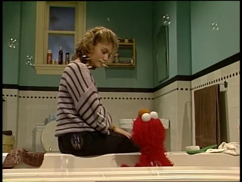 SCENE 2 | Gina lowers Elmo into the bath and he begins to splash around, asking to play a game. Gina says he needs to be washed first, but drops the soap into the tub and asks Elmo to feel around for it. This gives Elmo an idea for a game, and he dives into the "ocean" below... |