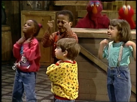 SCENE 5 | Now the next day, Susan leads Telly, Elmo, Gina, and the kids in a game of "Everybody Wash." |