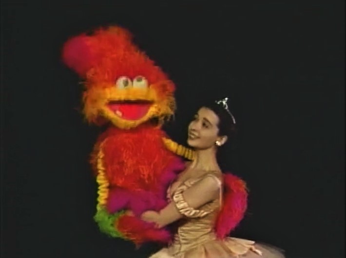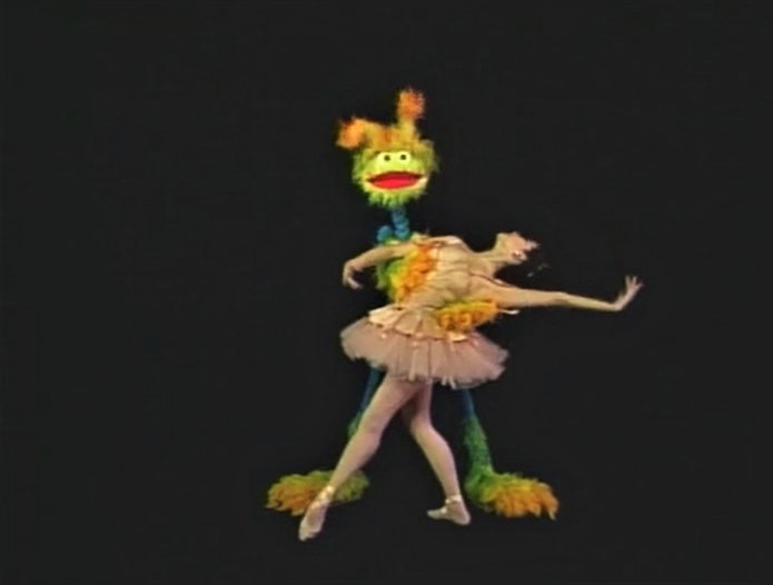 SCENE 4 | Big Bird suggests Gregory use a spell to make himself stop, or get another magician to fix it. Gregory prefers neither method; he likes tap dancing, so he doesn't mind. (Big Bird: "This magician has magic feet!") |