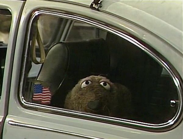 SCENE 1 | Gina has lost sight of Wolfgang and wonders where he went. Meanwhile, Luis and Gordon peer out of the 123 Sesame Street doors to make sure the coast is clear, explaining to Gina they're going fishing and don't want Wolfgang to know since he'll scare the fish away. Since the seal's out of sight, they quickly load up Gordon's car and head inside. However, as soon as they start the car, Wolfgang reveals that he has been in the back seat the entire time. |