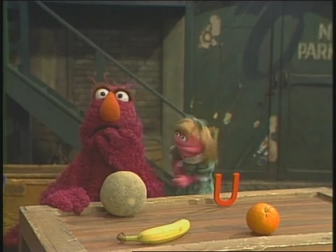 SCENE 3 | Telly sets up a game of "Three of These Things" for Gina to play, using pieces of fruit and the letter U. Telly barely gets through the first verse when Prairie interrupts to reclaim her letter U. She proceeds with her lecture when Barkley appears once more and steals her U, with Prairie still hanging on. Since the game is ruined, Gina claims the banana, having skipped lunch. |
