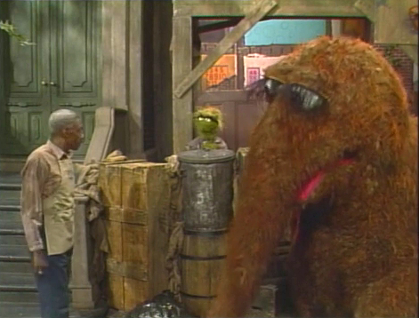SCENE 2 | Elmo finds the Amazing Mumford about to pull a rabbit from his hat, when Elmo insists that he try the trick first. Mumford asserts that the trick takes practice and correctly sees that Elmo can't do it on the first try. He demonstrates the trick for Elmo, only he makes a fish appear instead of a rabbit. "Like I said," he states, "it takes a lot of practice." |