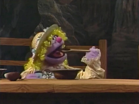 SCENE 2 | Baby Bear enjoys spending the day at Lillian's day care, especially since Goldilocks isn't there today. Lillian decides to engage the gang in a letter game to help Baby Bear forget about her. The musical game (sung to the tune of "C is for Cookie") is to come up with things that begin with the letter P, including peanuts and pie. Baby Bear refuses to play because the only P word he can think of is porridge, and porridge reminds him of how angry Goldilocks makes him. He gives it a try anyway, and twists the song's ending into one about his frustrations. |