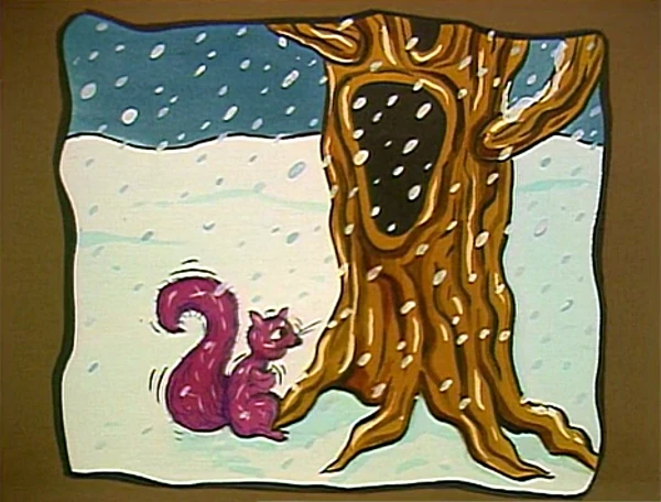SCENE 3 | Telly and Maria watch over Natasha while her mother is away. They wonder how to entertain her when the Worm Scouts arrive and suggest they read a story from their tiny Nature Stories book. Maria begins reading "The Acorn and the Squirrel," where an acorn thanks a squirrel for not eating him by growing into a large oak tree for the squirrel to live in during the winter. |