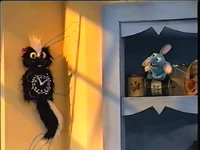 - The skunk clock first seen in this episode is seen again on the kitchen wall of the Big Blue House in future installments such as "I For-Got Rhythm!?" As Tutter disassembled the clock, this would indicate that Bear either reassembled it or ordered a new one.