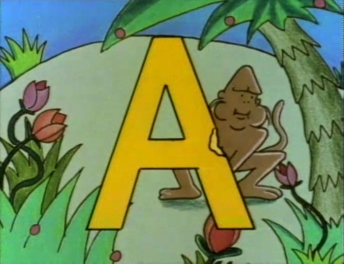 Cartoon | An ape takes a bite out of a yellow A. (First: Episode 2813) |