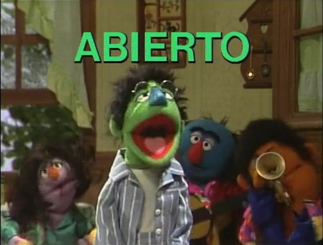 Muppets | Cerrado with Maria and an Anything Muppet (part 1). He sings a song about how everything is Cerrado, and at the end Maria gives him an Abierto sign, which opens everything in the house. (First: Episode 3015) |