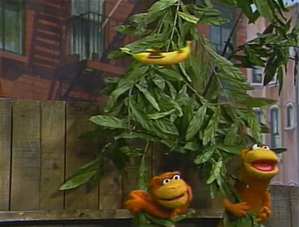COLD OPEN | Joey and Davey Monkey appear and display the sponsors (which they knock off the fence by accident). But, the most important thing they want to see on Sesame Street today is: BANANAS! |
