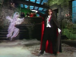 As with episode 119, which guest starred Vincent Price, this episode revolves around the theme of "ghoulies and ghosties and long-legged beasties and things that go bump in the night." Most of the action, both onstage and off, has a weird atmosphere, even when the guest star is not involved: the monstrous Germ attacks Beaker in Muppet Labs; the "Toothache" sketch with talking speleothems; and Pigs in Space, in which Link, Miss Piggy, Dr. Strangepork, and even the Swinetrek itself become mere animated outlines of their three-dimensional selves. The only "normal" moment in the show comes after Fozzie Bear, faced with some fanged Whatnot children in the canteen, begs for "one thing nice on this show tonight" - Robin the Frog answers his prayers by performing an understated and uninterrupted rendition of "Over the Rainbow."