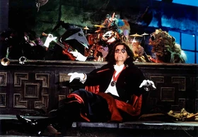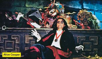 The "talented but frightening" Alice Cooper sets an eerie mood for the show from the moment he tells Scooter that the monsters in his dressing room aren't The Muppet Show's; they're his. Even the floating blue mass that comes out of Gonzo's horn in the opening has an otherworldly feel to it.