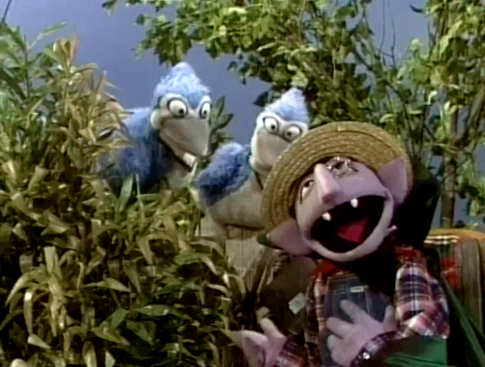 Muppets | At the saloon, Clementine asks for Forgetful Jones to sing a song. Buster plays "What's the Name of That Song?" on the piano, and the crowd (including a cow) sings along, but Forgetful keeps asking what the name of the song is. (First: Episode 1696) |