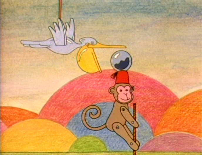Animation | A girl plays in, on, and under a sculpture. (First: Episode 2898) |