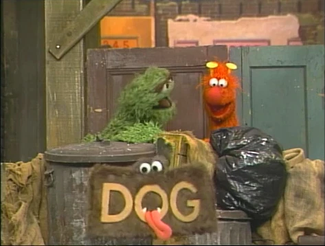 SCENE 5 | Oscar consults his dictionary with little success in finding a new, anger-stoking word. Grundgetta warns him of another impending word - PEANUT BUTTER. "What's so yucky about peanut butter?" asks Oscar when a globby version of the words appear and sticks itself to Oscar. He finds himself angry again, just to his liking, as Luis announces the sponsors. (Oscar: "Hey, anybody got any jelly?") |