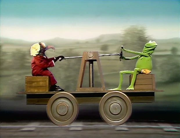 They face each other in confusion, then continue. Fozzie pulls Link in the right direction.