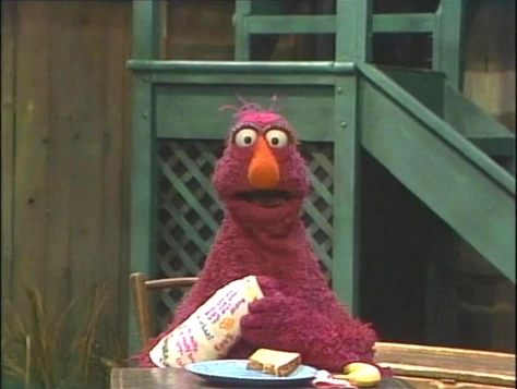In a flashback, Maria is seen offering to help Telly, but he insists that he doesn't need it, so she goes back to the Fix-It Shop. Before long, Telly realizes how hard it is to open the jar with one hand, scoop the peanut butter out of the jar, and spread it onto the bread. He asks Maria for help on all of those things. |