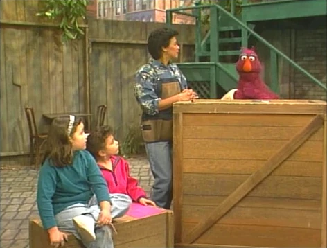 SCENE 4 | Telly talks to Maria, Melinda, and Nicole about how hard it is to do certain things with just one hand, such as tying a shoelace and cutting paper with scissors; Maria tells the girls to try it themselves. Telly does know something he can do with one arm: play tag, and he initiates a game with Maria. |