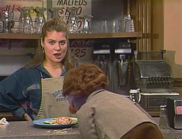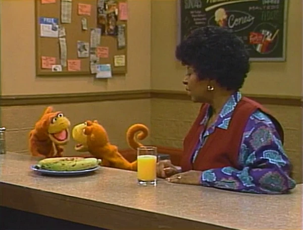 SCENE 3 | Susan comes in to Hooper's and asks Gina for a glass of orange juice. She notices two bananas on a plate, and Gina points out that they're plantains that Maria gave her. While noting how they differ from bananas, Joey and Davey Monkey quickly pop up and eat them, as they're close enough to bananas (their one weakness). |