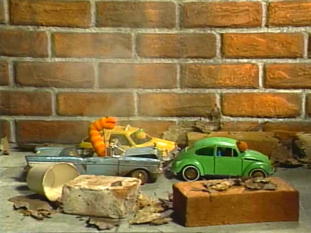 COLD OPEN | Oscar informs a worm friend of Slimey's, Crawlworthy, that Slimey has gone out for some errands. He took his car, meaning he's no doubt stuck in loads of worm traffic. A cutaway shot shows Slimey is indeed in a traffic jam, and Oscar goes on to describe the crummy conditions (too many cars on the road, air pollution from the smoke, and the possibility of his car breaking down many yards away) that he hopes to hear about later. |
