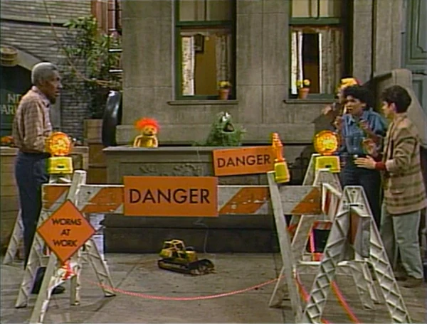 SCENE 2 | Savion, Merry Monster, Maria, Linda, and Mr. Handford have a difficult time getting around the street, which is filled with DANGER signs. Oscar, enjoying the spectacle, explains that the worms are building a subway stop in the area and need the workspace. The worms get ready to blast through the pavement, but the explosion turns out to be much smaller than expected. |