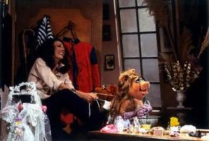 In the dressing room, Piggy asks Marisa to help tighten her girdle for the upcoming wedding sketch. |