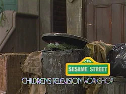 Meanwhile, Prunella is preparing to leave, simply because she loves saying goodbye and scramming. She finally gets her car to start and drives off, and Gordon sees that Oscar is heartbroken, even though he denies it before hiding away in his trash can. Big Bird and Snuffy come outside looking for Prunella, and Gordon tells them that she just left. He thinks maybe Oscar would like the picture of the mess, and tosses the photo into Oscar's can. Prunella announces the sponsors as Oscar takes another peek outside, letting out a heavy sigh. |