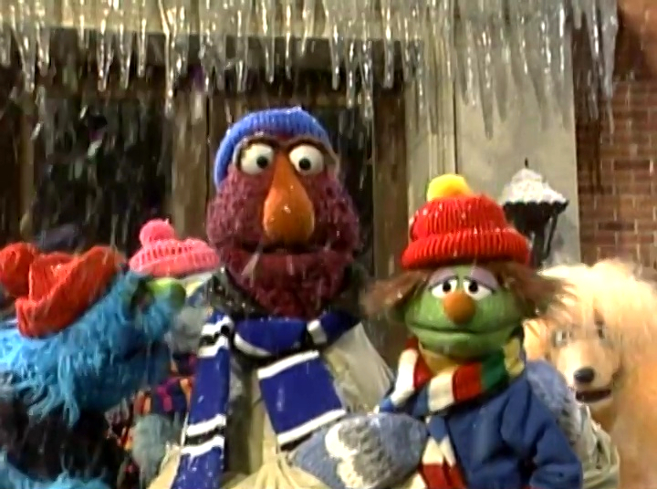 Muppets | Telly wanders into a Hispanic community during a snowfall, freezing his fur off. He hears the patrons on the street exclaim "Hace Frio!" |