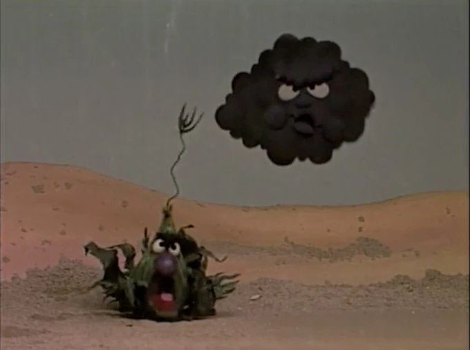 In the story, Stinky the Stinkweed lives in the desert where the grouchy sun (Peter Linz) maliciously shines on him. One day the sun decides to leave temporarily, which upsets Stinky at first. When Stinky looks up again, he sees a crabby cloud (Fran Brill) which pours rain on him; he begins to enjoy it until the cloud stops raining just to tease him. When the sun comes back, Stinky finds that his leaves have become bigger and he has grown a few buds, and from then on Stinky didn't mind when the sun goes away sometimes. |