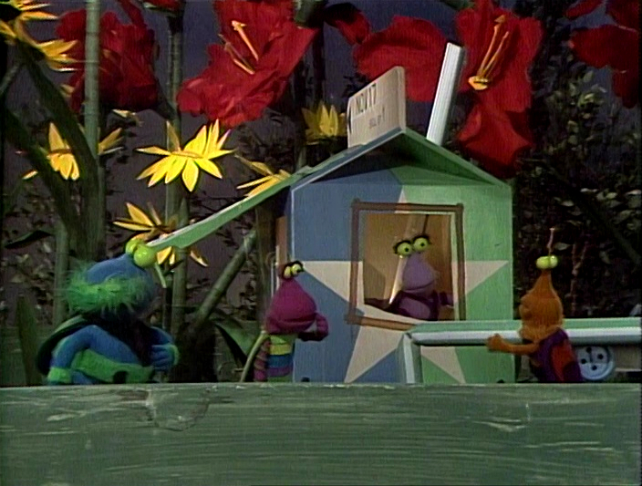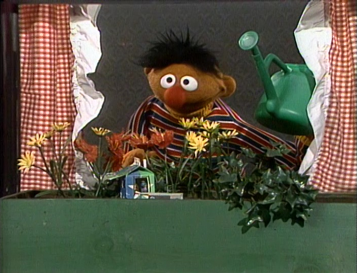 Muppets | The Twiddlebugs don't understand why they are getting all wet, while Mommy Twiddlebug isn't. They soon learn it's because she's inside the house. After they all huddle inside, Ernie finishes watering his plants. (First: Episode 1650) |