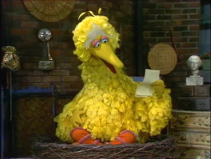 Insert | Big Bird reads a poem about how hard it is to be a sheep, and become cold when giving up one's wool: "So let's be fair when snow is deep, let's put the sweater on the sheep." Accompanied with cotton sheep illustrations. (First: Episode 1828) |