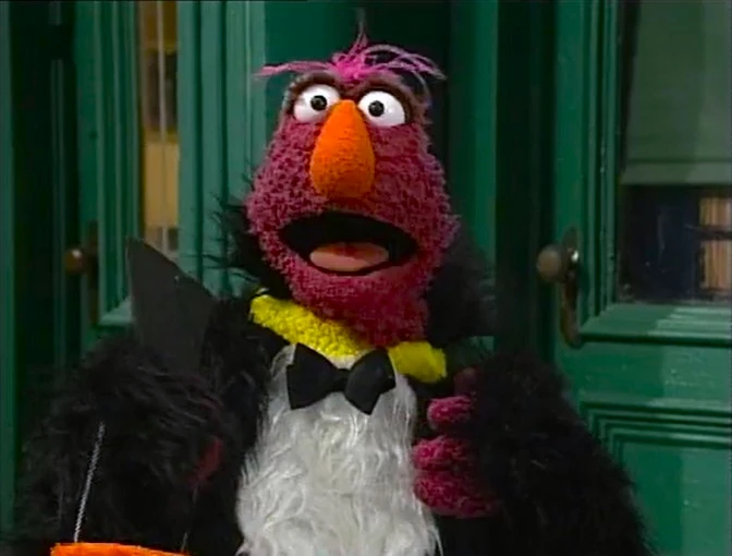 Seconds later, Wolfgang comes back dressed in a tuxedo. The monsters almost fall for the disguise until they point out that he doesn't have a beak. He goes and dons one, and is granted access to the party and the fish. |