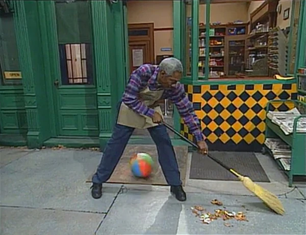 SCENE 2 | Elmo arrives at the next hole in front of 123 Sesame Street, where he will hit the ball so that it rolls between Mr. Handford's legs into Hooper's Store through the front door, come out the back door, and into the net. Elmo makes another successful shot, and they tell a confused Mr. Handford what's going on. He understands the importance of Prince Ted changing back to his former self: "It makes sense to me - you know, it's hard to dance at a wedding with a golf ball!" |