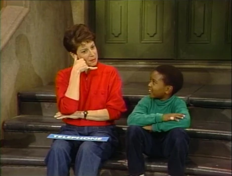 Cast | Linda shows a boy how to sign the word "telephone." (First: Episode 2581) cut from the Noggin version |