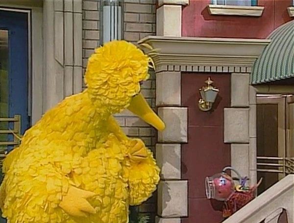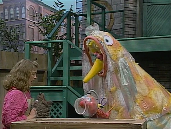 SCENE 1 | Big Bird is at the playground to introduce the letter W, one of the letters of the day. He has two friends that he brings in to assist him: the first is "a fish called Wanda"... Wanda Cousteau to be precise. Next, Wolfgang the Seal enters, as his name begins with the same letter. However, Big Bird has forgotten that Wolfgang loves eating fish, and soon Wanda has to "boldly run away like no fish has run before" with Wolfgang close behind. |