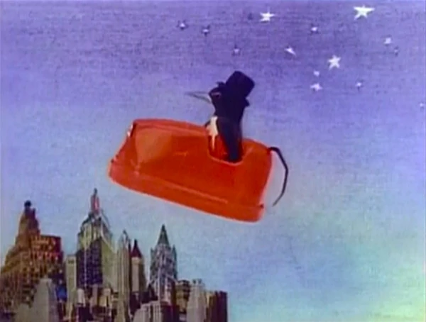 Cartoon | A bird transforms into a plane, a car, a cat, a fish, a submarine, Submarine Man, and back to a bird. Artist: Vince Collins (First: Episode 1616) |