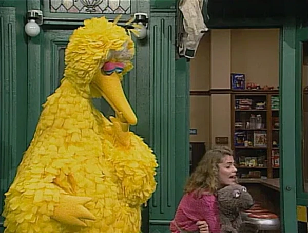 SCENE 6 | Wolfgang is chasing Wanda again past Hooper's Store, where Big Bird tells Gina what's been going on. She grabs Wolfgang and Big Bird suggests she should hold him forever, but Wanda gets an idea. She asks Gina to hold Wolfgang as long as she can while she and Big Bird get to work elsewhere. |
